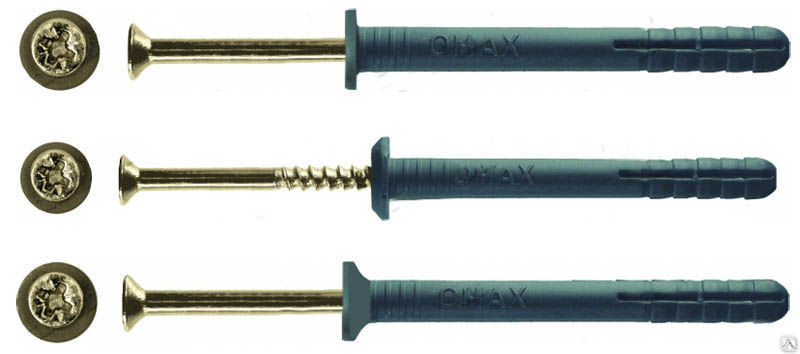 - Распорный. Гильза такого крепления может быть трёх-, четырёх- и шестираспорной, иметь дополнительные усики. Резьба шурупа позволяет не вкручивать его, а вбивать молотком.