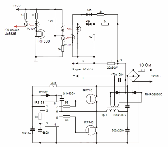 Системы управления и защиты играют важную роль в обеспечении надежной и устойчивой работы сварочного инвертора. Основой блока управления служит задающий генератор с использованием специальной микросхемы или широкоимпульсный модулятор. Плата управления дополняется резонансным дросселем и резонансными конденсаторами в количестве от 6 до 10 единиц. Трансформатор обеспечивает каскадную систему управления.