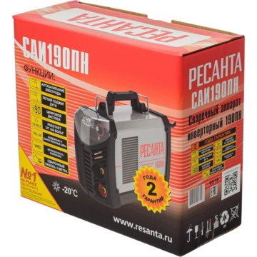 Принцип работы инвертора аппарата заключается в преобразовании переменного напряжения сети частотой 50Гц в постоянное напряжение величиной в 400В, которое преобразуется в высокочастотное модулированное напряжение и выпрямляется. «Ресанта» выпускает только инверторные сварочные аппараты, которые оснащены полезными функциями: