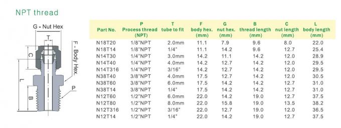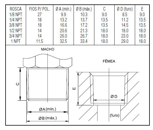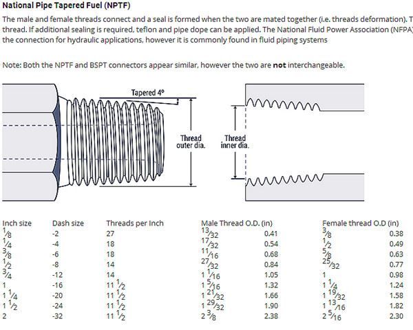 Таблица значений длины трубной резьбы NPT, ANPT, NPTF, NPTR, NPTG и NPTC