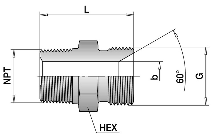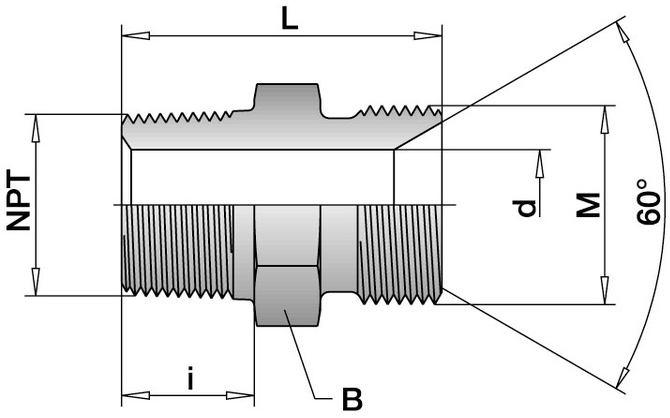 Переходник с внутренней резьбы G (метрическая BSPP) на наружную резьбу NPT