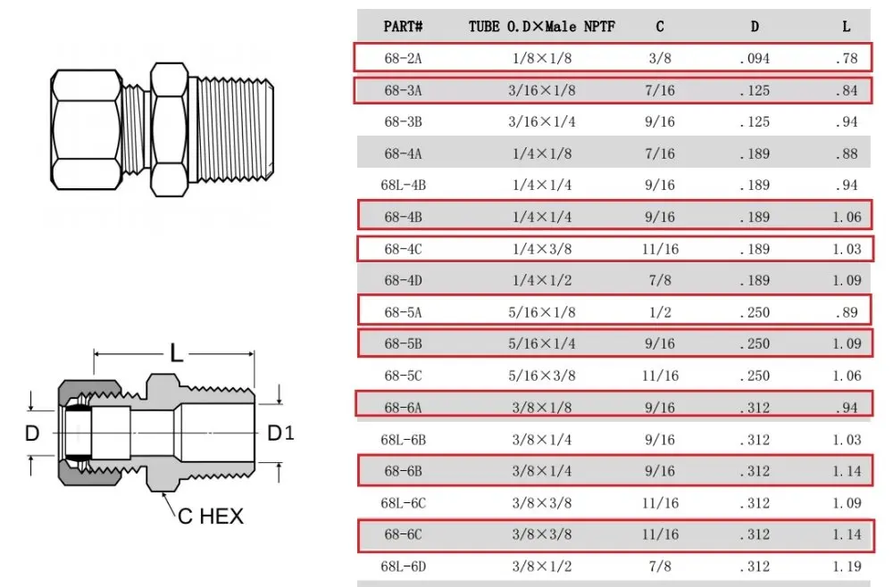 Например, ½” NPT не обязательно имеет диаметр точно ½”.