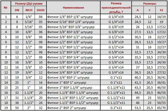 (1) Разные типоразмеры фитингов: от 1/16″ до 2″ и от 6 мм до 50 мм;