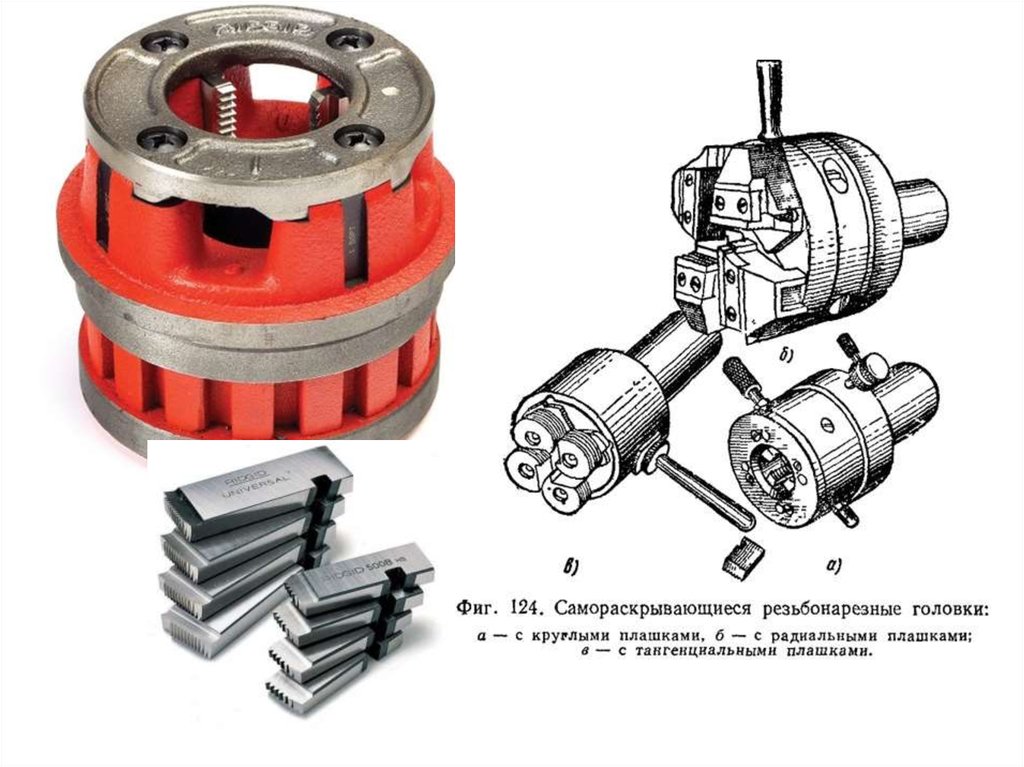 Головки более долговечны, чем плашки, и позволяют точно регулировать размеры резьбы, при необходимости выполнять ее нарезку в 2 прохода.