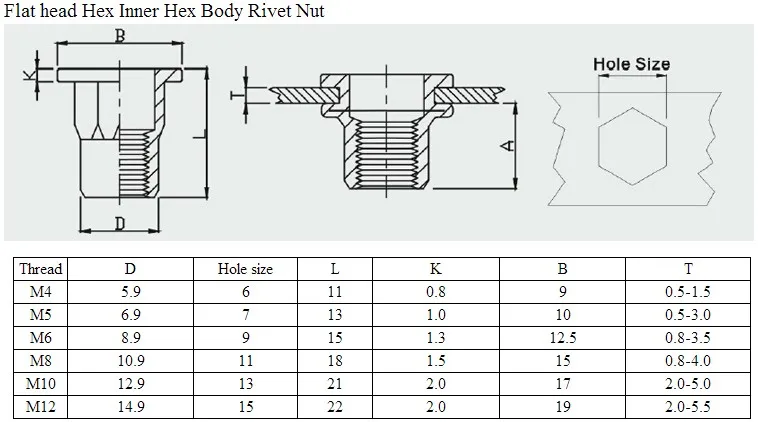 Заклепочные гайки создают резьбовые вставки для соединения предметов или материалов с помощью винтов и болтов, как правило, когда материалы слишком хрупкие или тонкие, чтобы выдержать резьбовое отверстие. Заклепочные гайки, также известные как глухие гайки, устанавливаются на одну сторону материала, что делает их идеальными для применений, где доступна только одна сторона, например, в автомобилях, мебели и бытовой технике.
