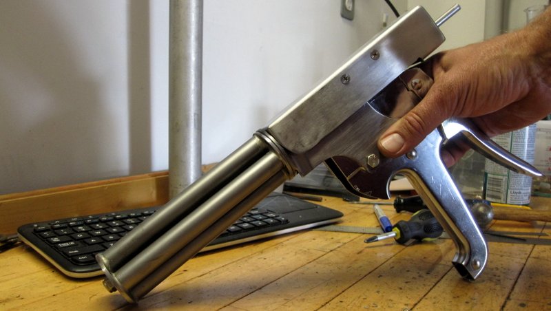 * Заполнить разобранный ствол газовым блоком и основанием мушки.