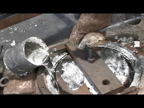 При ручном способе возможна одновременная заливка двух половинок подшипника в сборе или каждой половинки отдельно. Перед заливкой вкладыш прогревается на стальном листе до температуры 180 – 200 °С. Расплавленный баббит, объем которого несколько больше объема заливки, перегревается на 25 – 50 °С выше температуры плавления и быстро заливается непрерывной струей. После заливки поверхность баббита протыкается нагретым докрасна стальным прутком для выхода газа.