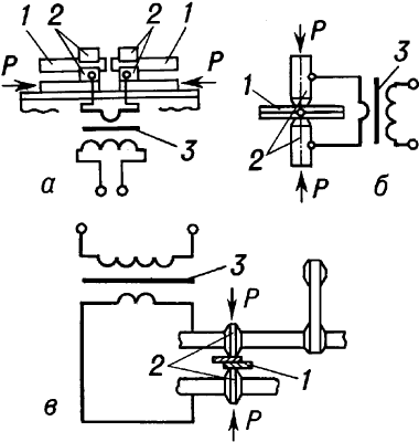 Электроды в контактной сварке служат для замыкания вторичного контура через свариваемые детали. Кроме этого при шовной сварке электроды-ролики перемещают свариваемые детали и удерживают их в процессе нагрева и осадки.