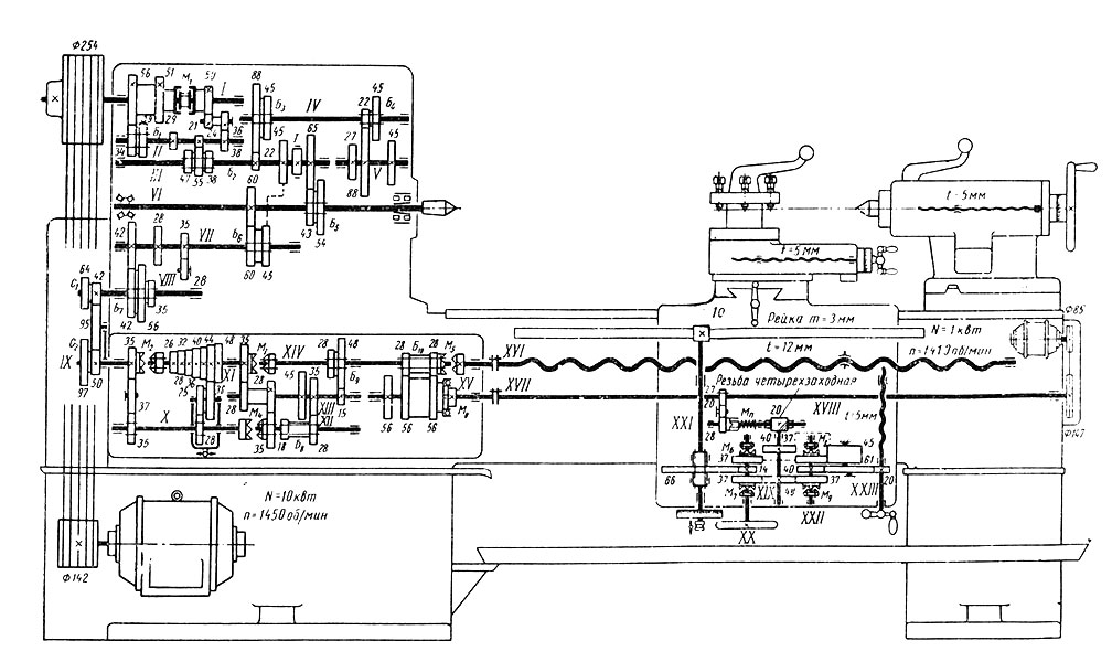 Умелец Кинематическая схема токарно-винторезного станка