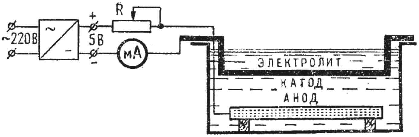 При выполнении обратного гальванопокрытия используется ток под напряжением, серная кислота и хромовая кислота.