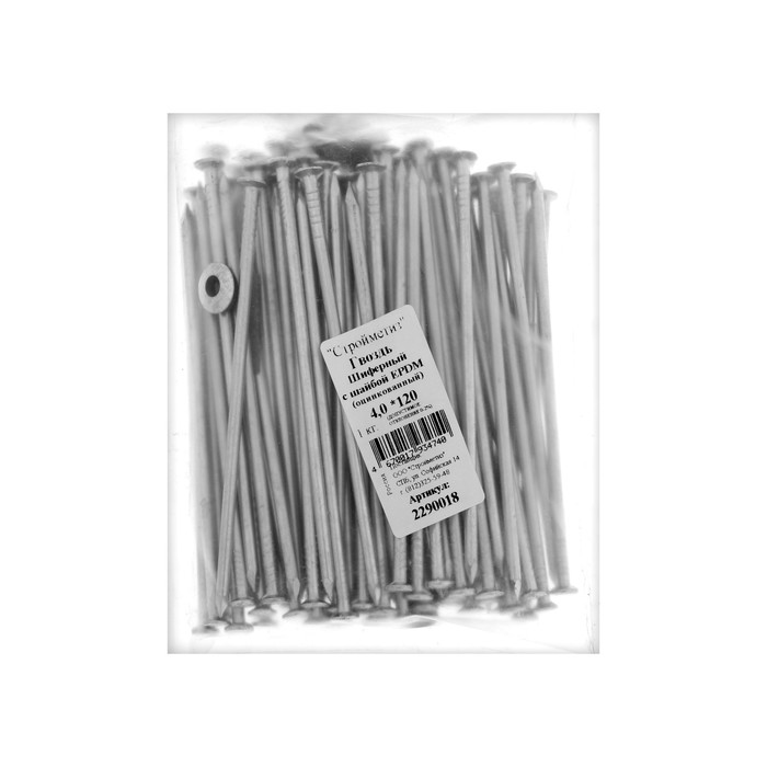 К слову, длина стержня шиферного гвоздя – от 90 до 120 мм, диаметр 4,5-120 мм, диаметр и высота головки равны 12 мм и 1,8 мм соответственно.
