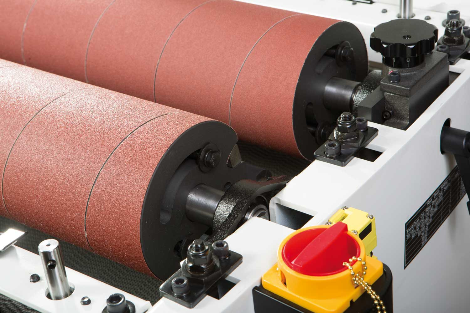 - На каждый шлифовальный узел можно поставить двухскоростной электродвигатель. Это дает возможность шлифовать различные материалы в разных режимах. Например, мягкие породы древесины надо пропускать через станок медленно, а шлифовальная лента при этом должна вращаться быстро.