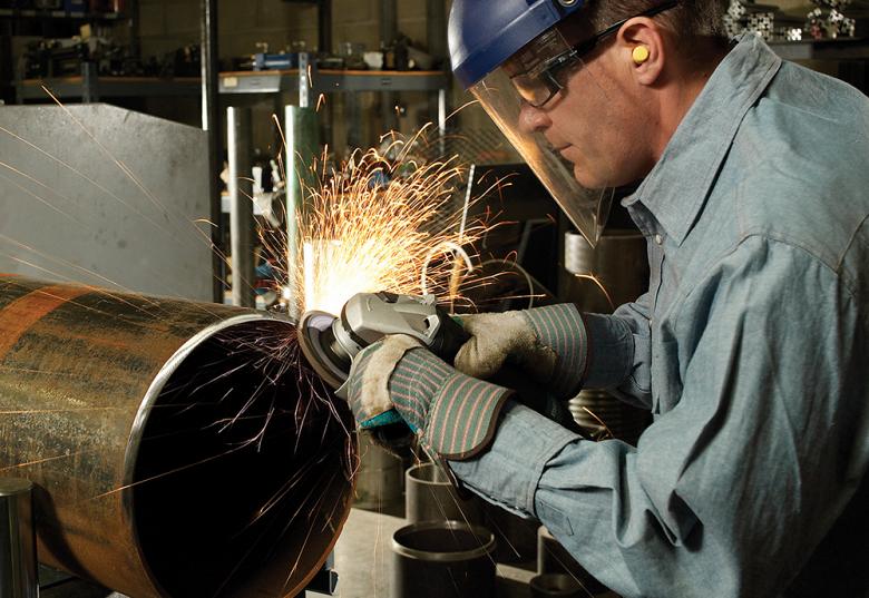 ΠΡΠΈΠΊΡΠ΅ΠΏΠΈΡΠ΅ ΡΠ»ΠΈΡΠΎΠ²Π°Π»ΡΠ½ΡΠΉ Π΄ΠΈΡΠΊ ΠΈ Π²ΠΊΠ»ΡΡΠΈΡΠ΅ ΠΊΠΎΡΠ΅ΠΌΠΎΠ»ΠΊΡ, ΡΡΠΎΠ±Ρ Π΄ΠΈΡΠΊ Π½Π°ΡΠ°Π» Π±ΡΡΡΡΠΎ Π²ΡΠ°ΡΠ°ΡΡΡΡ. ΠΡΠΈΠΆΠΌΠΈΡΠ΅ Π°Π±ΡΠ°Π·ΠΈΠ²Π½ΡΠΉ Π΄ΠΈΡΠΊ ΠΊ ΡΠ΅Π»Π΅Π²ΠΎΠΌΡ ΠΌΠ΅ΡΠ°Π»Π»Ρ, ΡΡΠΎΠ±Ρ Π²ΡΡΠΎΠ²Π½ΡΡΡ, ΡΠ³Π»Π°Π΄ΠΈΡΡ ΠΈΠ»ΠΈ ΠΏΠΎΠ»Π½ΠΎΡΡΡΡ ΡΠ΄Π°Π»ΠΈΡΡ ΡΠ°ΡΡΠΈ ΠΌΠ΅ΡΠ°Π»Π»Π°.