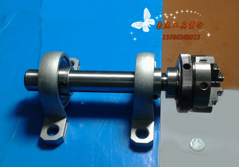 На торец устанавливается зажимное устройство: токарный патрон, цанга, планшайба, упорный центр.
