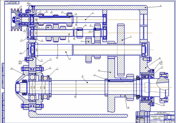 Валы входят в конические ролики качения и получают обороты от клиноременного шкива. Конструктивная простота шпиндельного узла определяется количеством подшипников, надежной фиксацией, герметичностью элементов уплотнения.