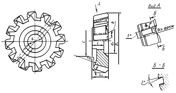 1.1. Основные размеры фрез должны соответствовать указанным на чертеже и в табл.1.