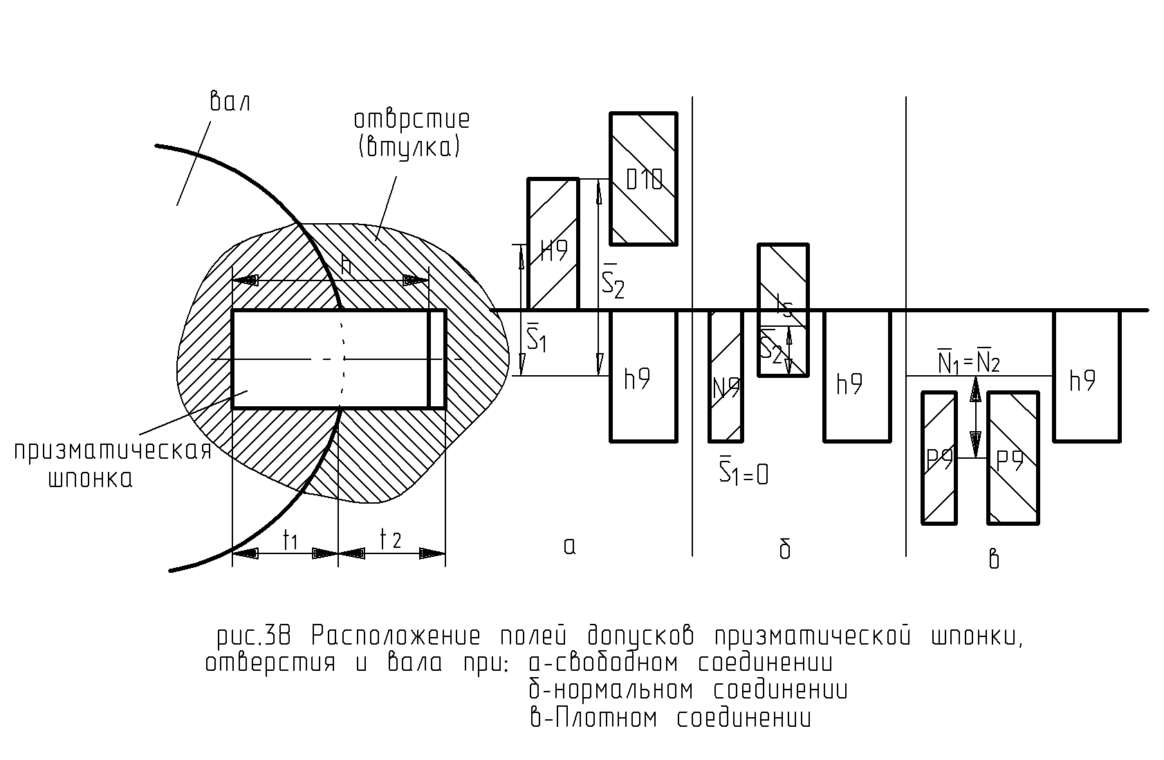 - Допускаются для ширины паза и втулки любые сочетания полей допусков, указанных в таблице.
