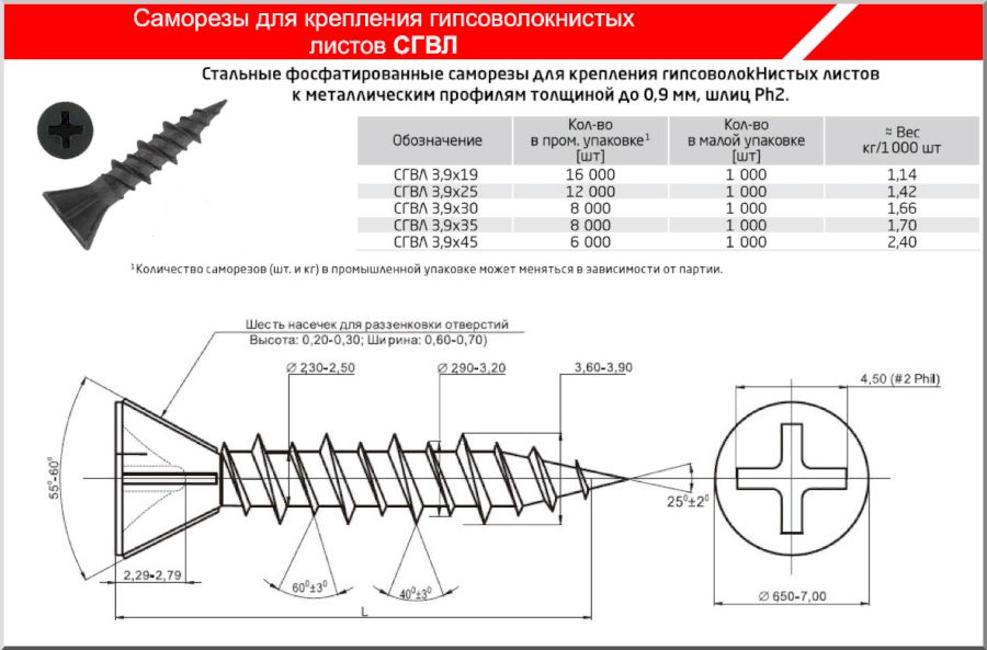 Оттуда вы сможете определить внутренний диаметр и диаметр хвостовика шурупа по соответствующему ряду.