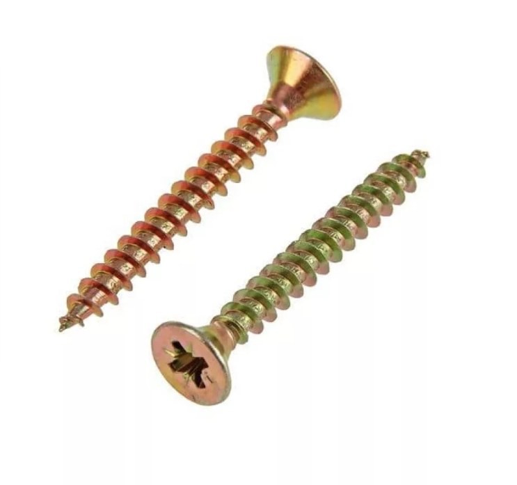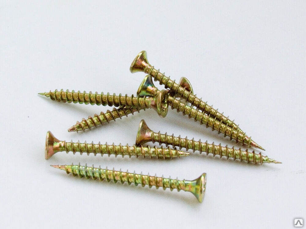 Разные размеры желтых саморезов по дереву со средним шагом резьбы