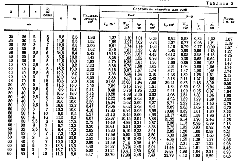 Размеры проката углового профиля оговариваются ГОСТ 8509-93 и 8510-86; швеллеров — 8240-97; двутавров — 26020-83; тавров — ТУ 14-2-685-86; (получаемых продольным разрезом пополам горячекатаных двутавров с парал-ыми гранями полок по ГОСТ 26020-83) — смотрите калькулятор веса двутавра.