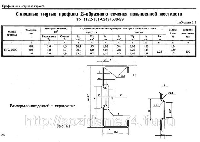 Площадь поперечного сечения и справочные величины для осей вычислены по номинальным размерам. При вычислении массы 1 м профиля плотность стали принята равной 7,85 г/см.