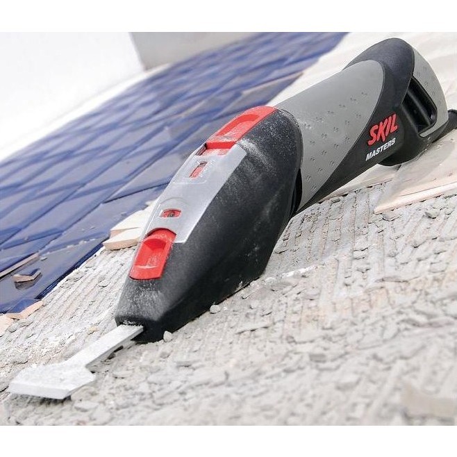 SKIL 7720 MA — мощный электрический мультирезак-шабер, который поставляется в прочной сумке и в комплекте с пятнадцатью ножами. Инструмент легко удаляет краску, шпаклевку, межплиточные швы, покрытие пола, затвердевшие излишки пены, штукатурку, гипс, клей и многое другое. Оснащен мощным двигателем 250 Вт, имеет три настройки частоты вращения и поможет ускорить и облегчить выполнение работ. Система безынструментальной фиксации позволяет легко заменять или снимать насадки. Корпус оснащен мягкими накладками для надежного хвата и максимального контроля инструмента во время работы. Четырехметровый резиновый кабель обеспечивает дополнительную свободу перемещения.