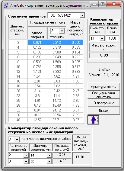 Вся сложность такой процедуры обусловлена периодическим профилем этого металлопроката. Поэтому людям, не имеющим специального образования, при возведении хозяйственных построек и при закупке металла проще использовать удельный вес арматуры, приведенный в стандартах на этот вид продукции. При проектировании и строительстве крупных и ответственных объектов уже используются сложные математические расчеты и специализированное программное обеспечение.