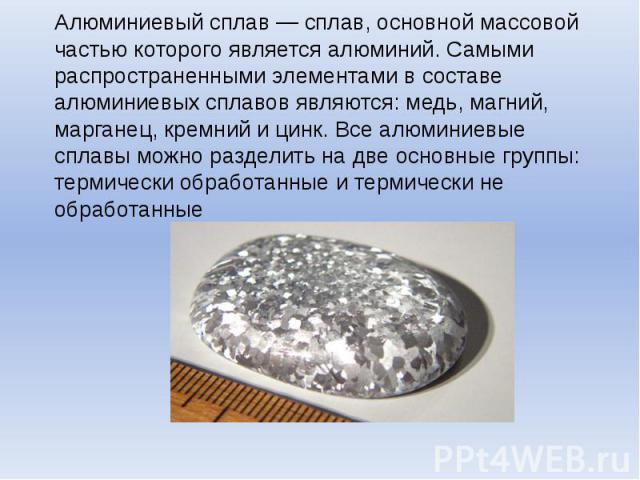 Q — Мне сообщили, что чистый алюминий обычно не используется в конструкционных целях и что для производства алюминия, обладающего достаточной прочностью для изготовления конструкционных компонентов, к алюминию необходимо добавить другие элементы. Какие элементы добавляют в эти алюминиевые сплавы? Как они влияют на характеристики материала? И в каких приложениях используются эти сплавы?