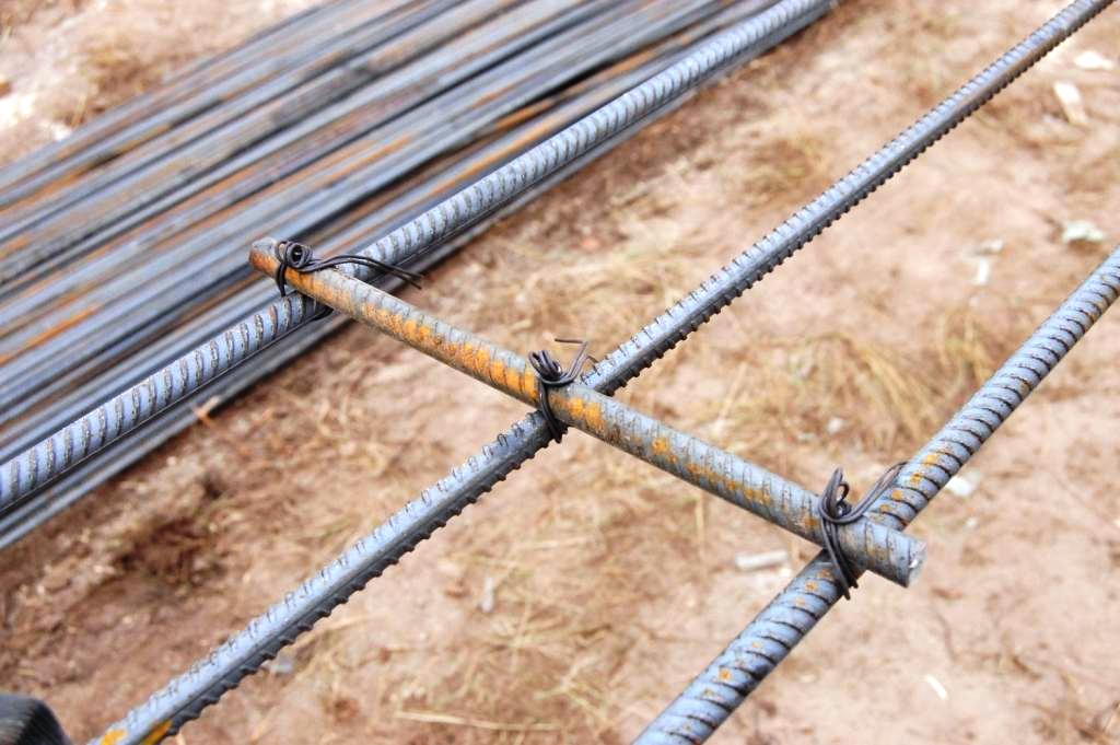 Бетон хорошо работает на сжатие, но упрочняется металлом для повышения прочности на изгиб и растяжение. Для соединения прутков в каркасы применяется вязка арматуры. Количество металлических элементов, их диаметр определяются предварительным расчетом в соответствии с планом. Чаще применяется стальная проволока, но иногда используются пластиковые клипсы.