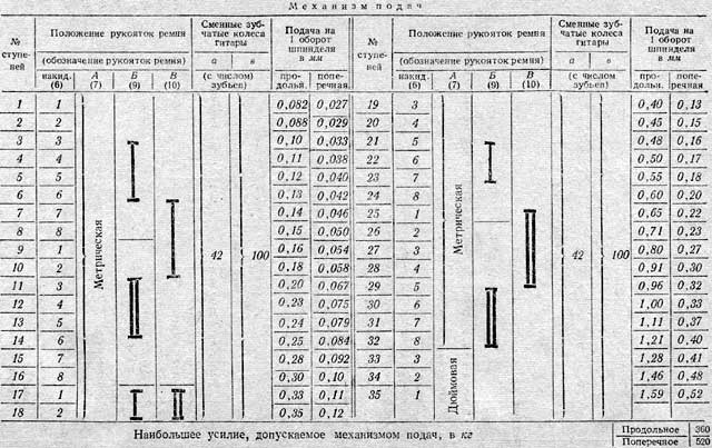 Коробка подач обеспечивает, нарезку метрическим, дюймовым, модульным и питчевым способом, не применяя при этом сменные шестерни.
