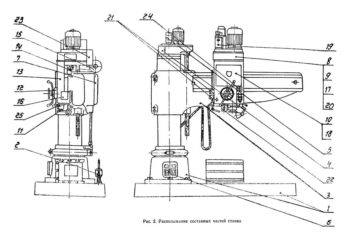 Радиально-сверлильный станок 2М55: технические характеристики, схема