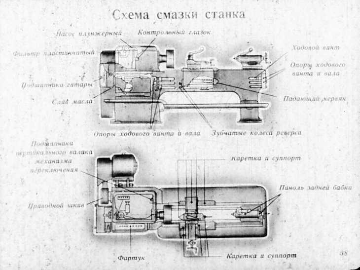 Всего используется 18 чисел, на которых происходит вращение шпинделя. Устанавливается внутри корпуса станины. На шарикоподшипниках монтируют валы этой коробки. Плунжерный насос, регулирующий смазку, находится на одной из таких деталей.
