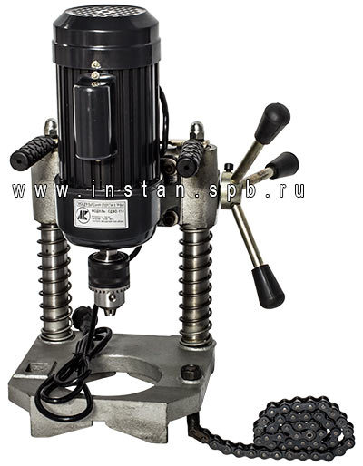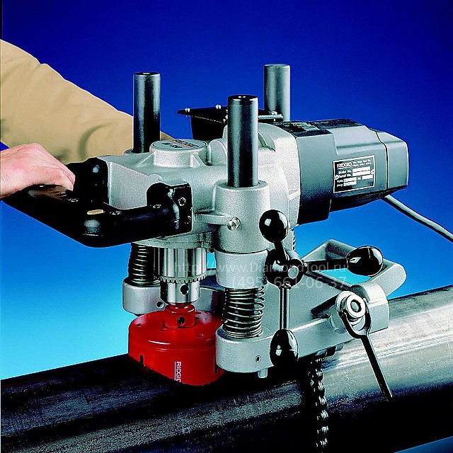 Станки для сверления отверстий в трубах применяются на этапах прокладки коммуникационных сетей, монтаже трубопроводов, газопроводов, систем пожаротушения. Крепление осуществляется запатентованным пружинно-цепным механизмом. Подпружиненная цепь перекидывается вокруг трубы и крепко притягивает станину к поверхности, обеспечивая прочную установку и неподвижность во время работы.