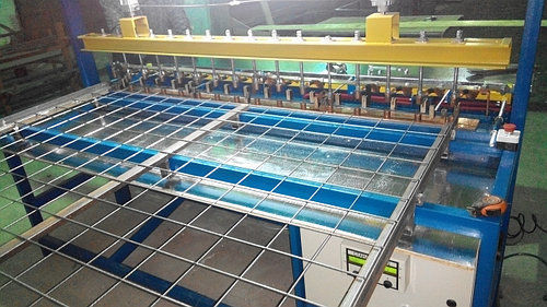 Линия для производства электросварной сетки из предварительно заготовленых мерных прутов диаметром от 4 до 12 мм, максимальный диаметр сварки 12+12 мм, шириной карт от 1000 до 3300 мм, длиной до 12000 мм в зависимости от комплектации.