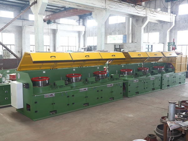 Волочильный стан непрерывного типа – это многоблочный, многоволоковый стан с функциями волочения и сматывания в бунты. Волочильные барабаны покрыты антифрикционным составом, для предотвращения чрезмерного трения. Волочильный барабан изготовлен с помощью точечной сварки, а его внутренняя сторона охлаждается с помощью принудительного водяного охлаждения. Волокодержатель оснащён волокой под давлением для лучшей смазки и устройством водяного охлаждения. Шестерни редукторной коробки сделаны из высокопрочного сплава и прошли термическую обработку с последующей шлифовкой, что обеспечивает их бесшумную и эффективную эксплуатацию на больших скоростях.