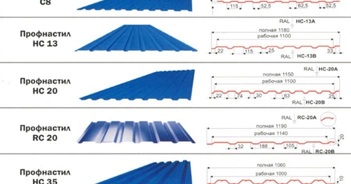 назначение определённых видов профнастила, их маркировка, длина и ширина