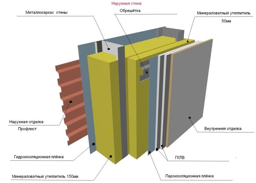 В работе приведены стены из стального профнастила послойной сборки или из