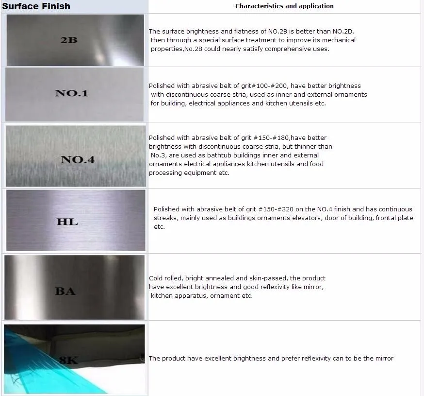 Такие распространенные марки нержавеющей стали, как 201, 304, 304L и 316L, имеют стандартную отделку 2B.