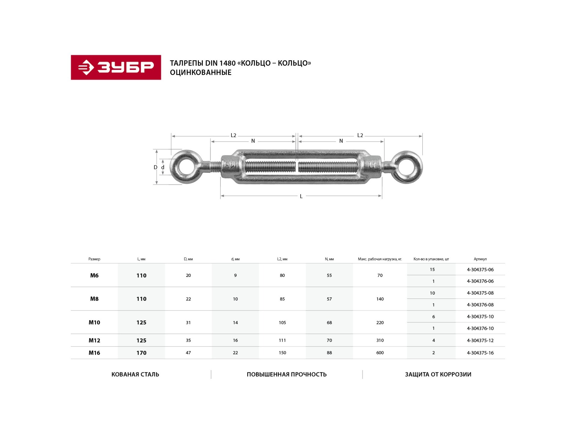 Талрепы размеры: Талреп крюк-кольцо М10. Талреп М10 крюк-петля.
