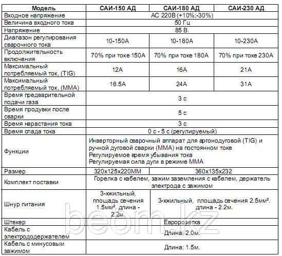 Технические характеристики — инверторный сварочный аппарат Ресанта САИ-190К (MMA)