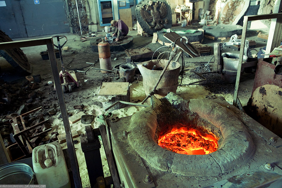 Процесс отливки нужного тиража бронзовых изделий идет в течение нескольких суток, не прекращаясь.
