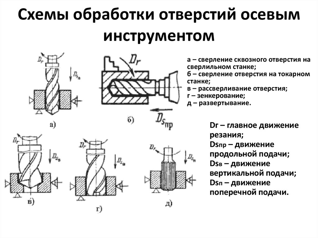 Сверлильный станок удаляет материал, используя спиральное сверло с заостренным концом для вырезания отверстий в металле. Другие распространенные инструменты для обработки отверстий также включают развертывание, растачивание, зенкерование, зенкерование и нарезание внутренней резьбы с использованием насадки для нарезания резьбы.