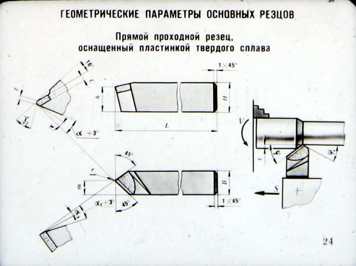В резце токарном проходном прямом с углом врезки пластины 0° в основном используются пластины из твёрдого сплава Т15К6, Т5К10.