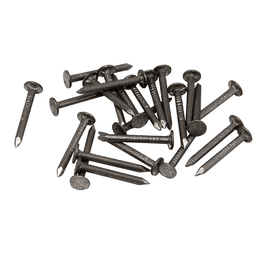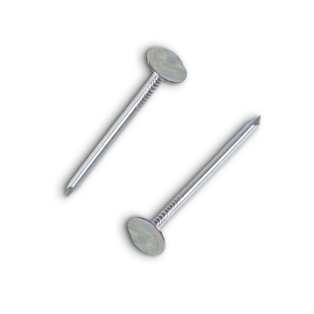 Предназначены для крепления к деревянным поверхностям мягких кровельных материалов (рубероид, битумная черепица и др.). Часто используют такой крепеж для монтажа сайдинга, крепления к деревянным поверхностям листов ДВП и МДФ при обивке стен или мебели. Плоская шляпка увеличенного диаметра, а также наличие неровностей на теле гвоздя рядом со шляпкой обеспечивают прочное и надежное соединение материалов. При использовании в агрессивной среде, во избежание подтеков, необходимо закрывать шляпку гвоздя дополнительным защитным слоем, (краска, шпаклевка) или основным, чистовым материалом.