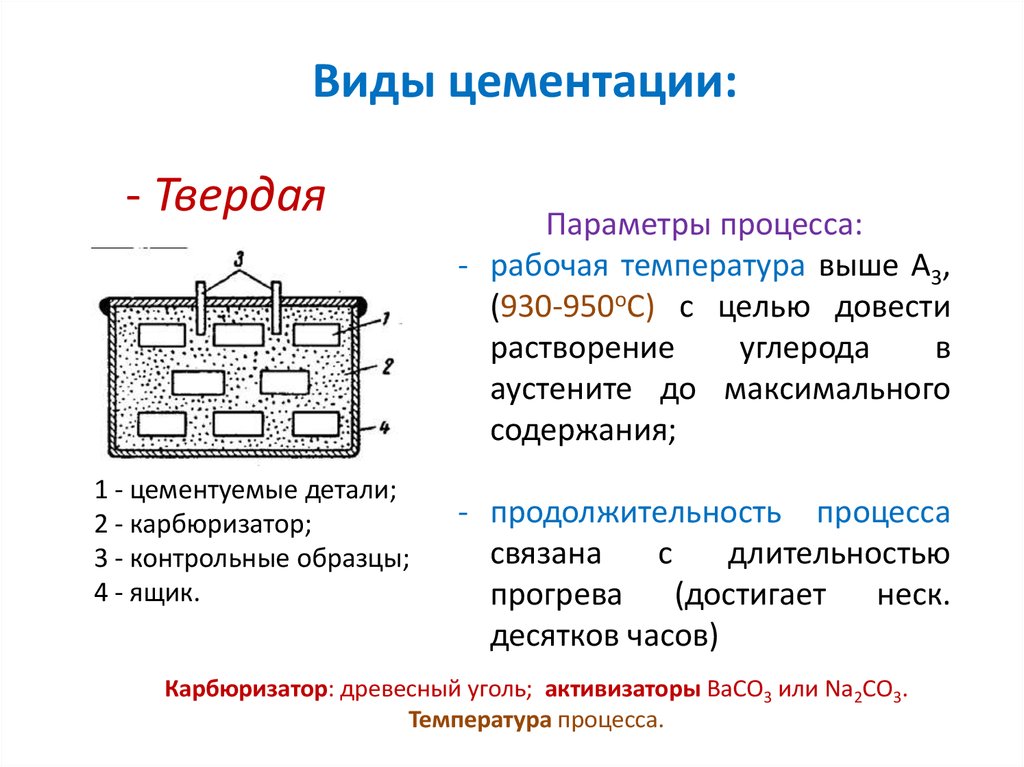 Современные технологии позволяют проводить процессы цементации в следующих условиях: