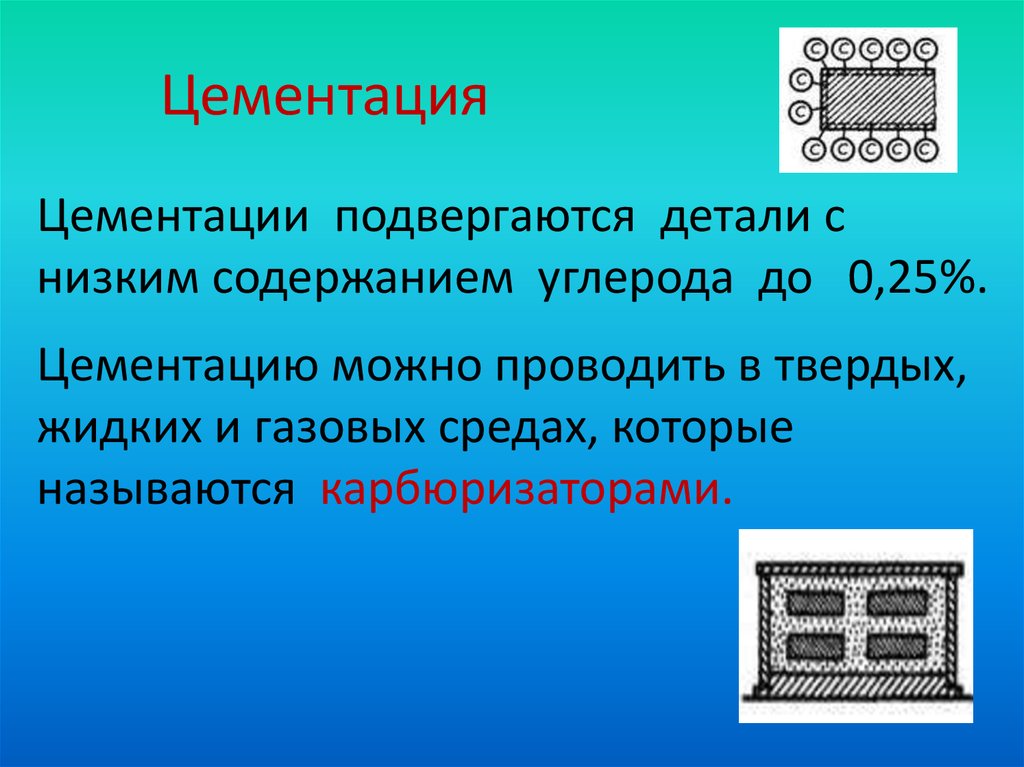 Цементация металла – это вид термической обработки металлов с использованием дополнительного химического воздействия. Атомарный углерод внедряется в поверхностный слой, тем самым его насыщая. Насыщение стали углеродом, приводит к упрочнению обогащенного слоя.