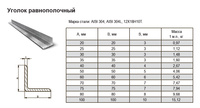 | уголок равн. 100х100*8 | 12,2 кг/м | 100 мм | 8 мм |