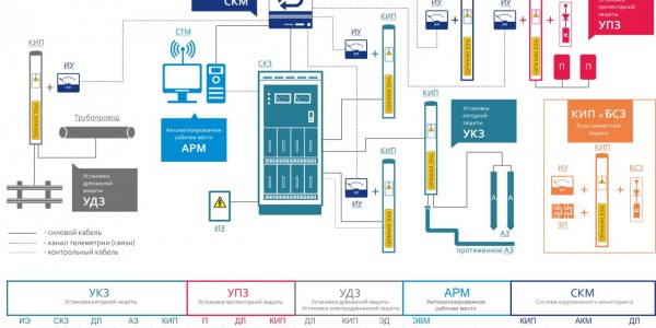 Станции катодной защиты (СКЗ) предназначены для электрохимической защиты трубопроводов от почвенной коррозии. Принцип их действия заключается в том, что на трубу искусственно подается отрицательный (катодный) потенциал, чтобы анодный процесс (процесс разрушения металла) происходил на дополнительном искусственном электроде-заземлителе. В зависимости от электрохимической активности грунтов СКЗ устанавливают на расстоянии 7-10 км друг от друга. В состав СКЗ входят трансформаторный пункт, сетевая катодная станция и анодное заземление.