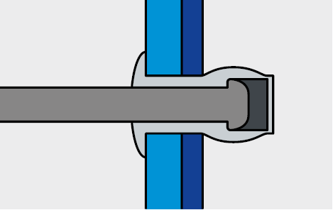 После этого тело заклепки нужно поместить в монтажное отверстие. Чтобы установить метиз, нужно вращать гайку, поддерживая головку болта ключом.