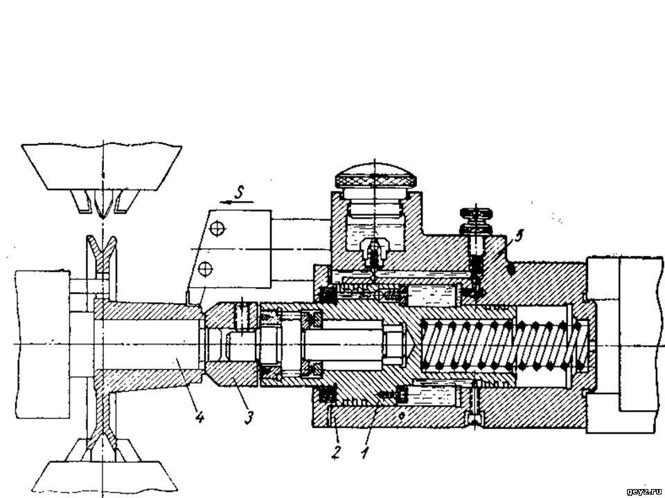- В виде встроенного в корпус цилиндра со штоком качающегося типа.
